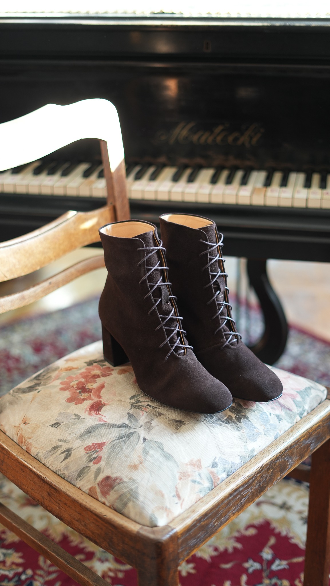 Lea – lace up ankle boots, timeless and very feminine. They have a perfect contoured lace up top that slims the leg, that holds the ankle firmly and shapes it up. They sit on a perfectly fitting heel, finished with soft goat leather inside to make them very comfortable for many hours. Combination of elegance and comfortable wear, which makes them an ideal choice for those who appreciate style and high comfort. Tested out and highly recommended by our loyal, satisfied customers.